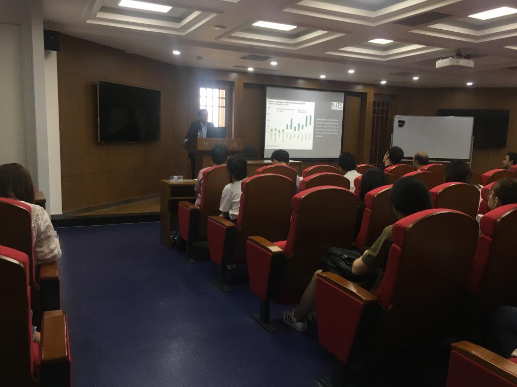 Sarath教授首先介绍了“一带一路”倡议的基本发展状况,其次讨论了现阶段世界经济发展中存在的种种不确定性,并进一步分析了在此情况下,国际贸易与金融市场受到的冲击和影响。在此基础上,Sarath教授进一步分析了中国与其他亚洲国家经济的优势与特色,探讨了在世界经济面临不确定性情况下,“一带一路”倡议为亚洲经济发展提供的新的机遇与潜力,指出“一带一路”倡议的推进具有非常重要的积极意义。