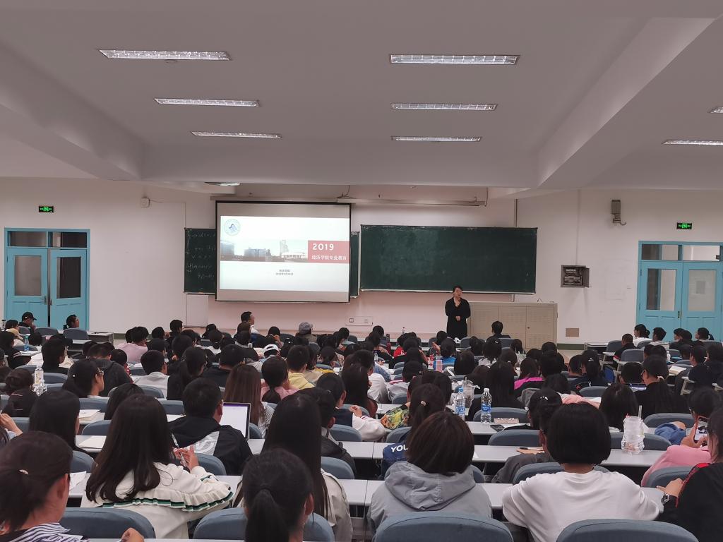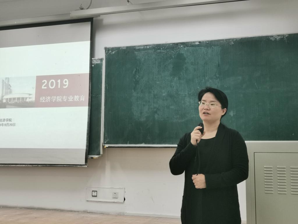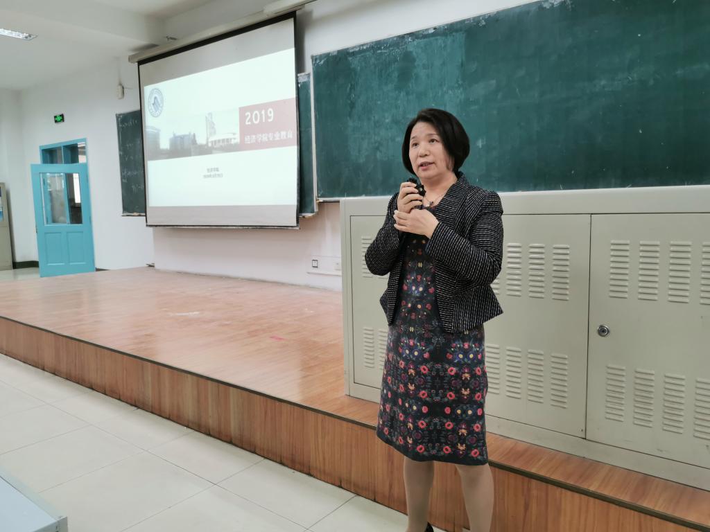 首先,四个系的老师分别介绍了本专业的相关情况。孙黎老师为同学们讲解了国际经济与贸易专业的专业特色、就业去向和必备素质。周佰成老师介绍了金融系的专业内容、专业课程、就业去向和资格考试。李士梅老师从财政系的专业特点出发,为学生们介绍了财政的功能、财政系的师资力量和学生毕业去向。赵新宇老师介绍了经济学系的专业设置、专业内容和毕业生去向。