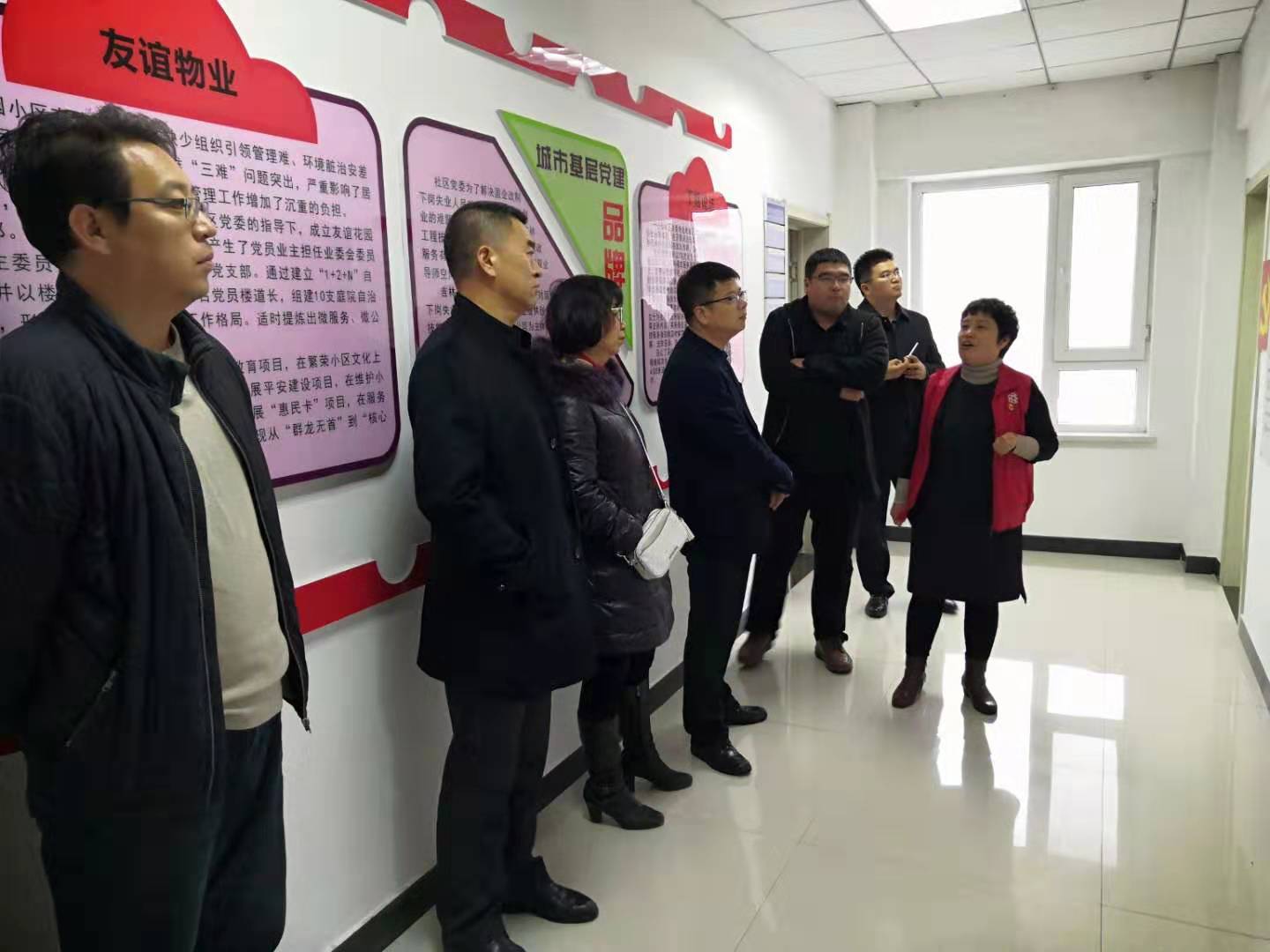 随后,我们来到凯旋街道的一心街社区。一心街社区在社区党委王蕾书记的带领下,先后被评为长春市精神文明先进社区、长春市民生工作先进集体、长春市食品安全宣传示范社区、长春市司法行政建设先进单位。王蕾书记2018年被授予“吉林省优秀人民调解员”称号。王蕾书记亲自为我们讲解社区的发展及现状,并就社区创立的“友谊物业”、“双业导师空间”、“丁姐说法”等党建品牌进行细致的讲解,还带领我们一行到一心街社区公共法律服务工作室、新时代实践工作站、学雷锋志愿服务站、阳光文化艺术课堂等进行参观学习。之后,在王蕾书记的引荐下,行政教工党支部与本科生党支部与一心街社区一户家庭对接联系,对该家庭进行帮扶。行政教工党支部将支部党员的爱心捐赠送到户主手中,并与本科生支部党员联合对家庭中在学学生进行学业等方面的帮扶。最后,宽城区政协委员联络科科长刘鑫、宽城区凯旋街道党办主任宋润涵、凯旋街道安监站站长么红旭、一心街社区王蕾书记与茄子视频