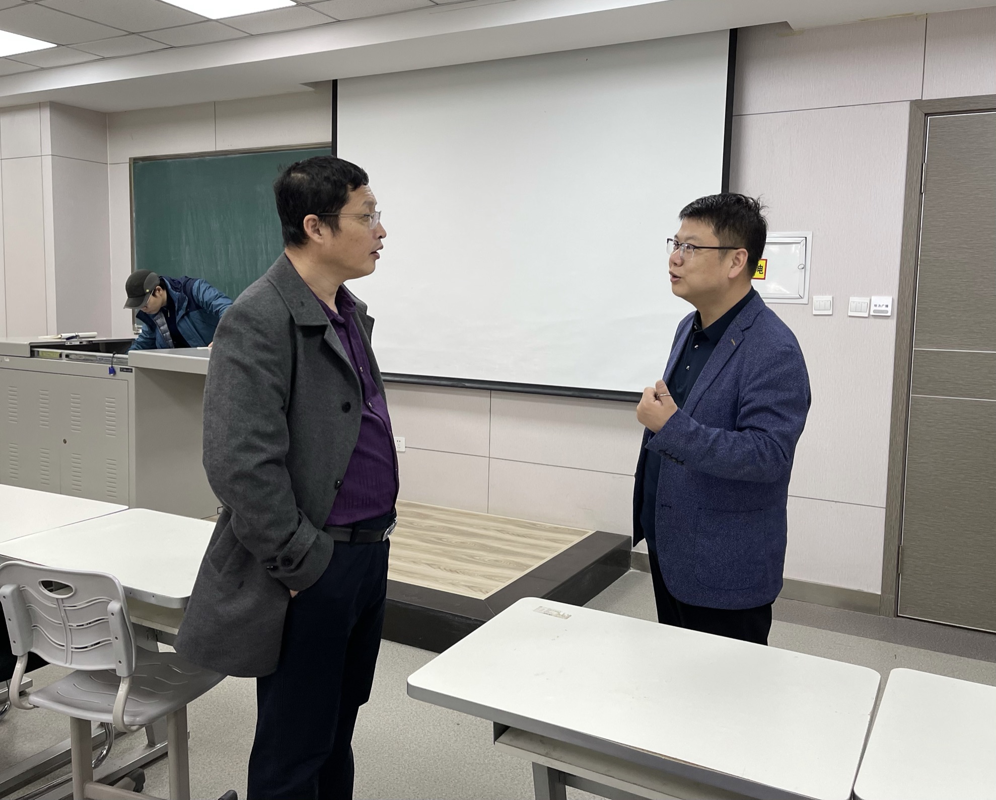 在党委书记聂宏凯带领下,赵勇、副院长邵学峰等一行组成检查组,代表学院领导班子,到前卫校区第三教学楼检查学院本科生课堂教学情况。