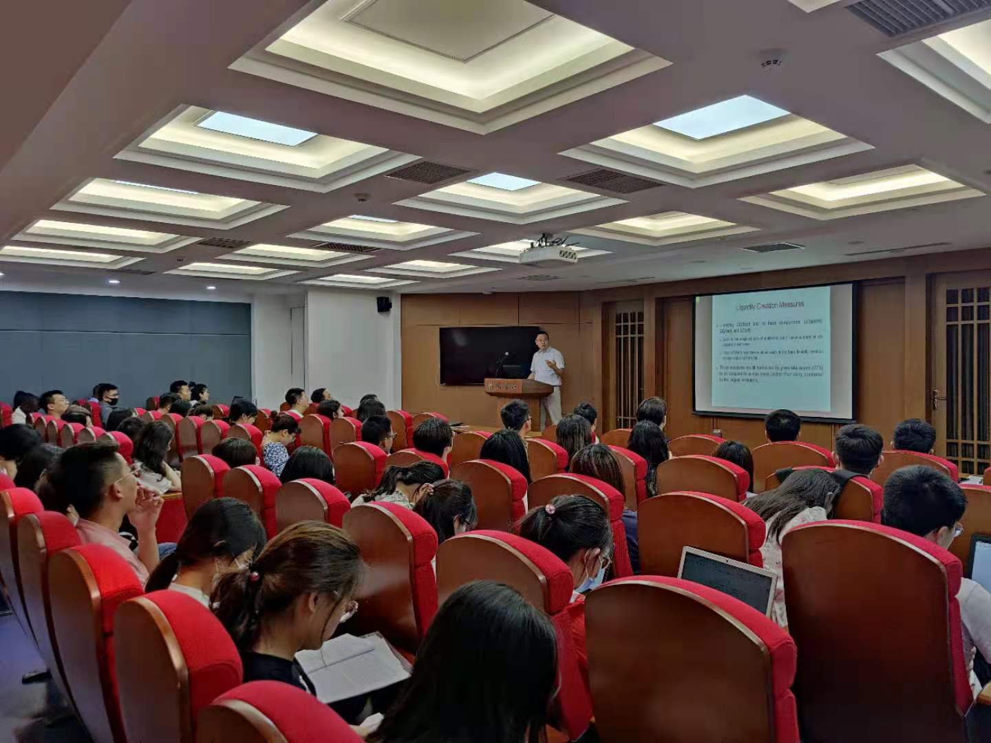 讲学,并要求各位同学借此机会认真学习金融前沿理论。随后报告中,李欣明副教授以“Legal Enforcement and Bank Liquidity Creation”为题,通过考察母国法律执行对外国子公司东道国银行流动性创造的影响,来解决已有研究中识别困难的问题。发现在母国有效的合同执行通过三个部分增加了外国子公司银行的流动性创造,并且该结果对于子样本测试、额外的监管控制和替代执行措施是稳健的,而母国执法的影响主要体现在母国债权和东道国执法的影响上。李欣明副教授随后回答了现场老师和同学们的提问,并与大家进行了深入的互动交流,报告会在热烈的氛围中圆满结束。