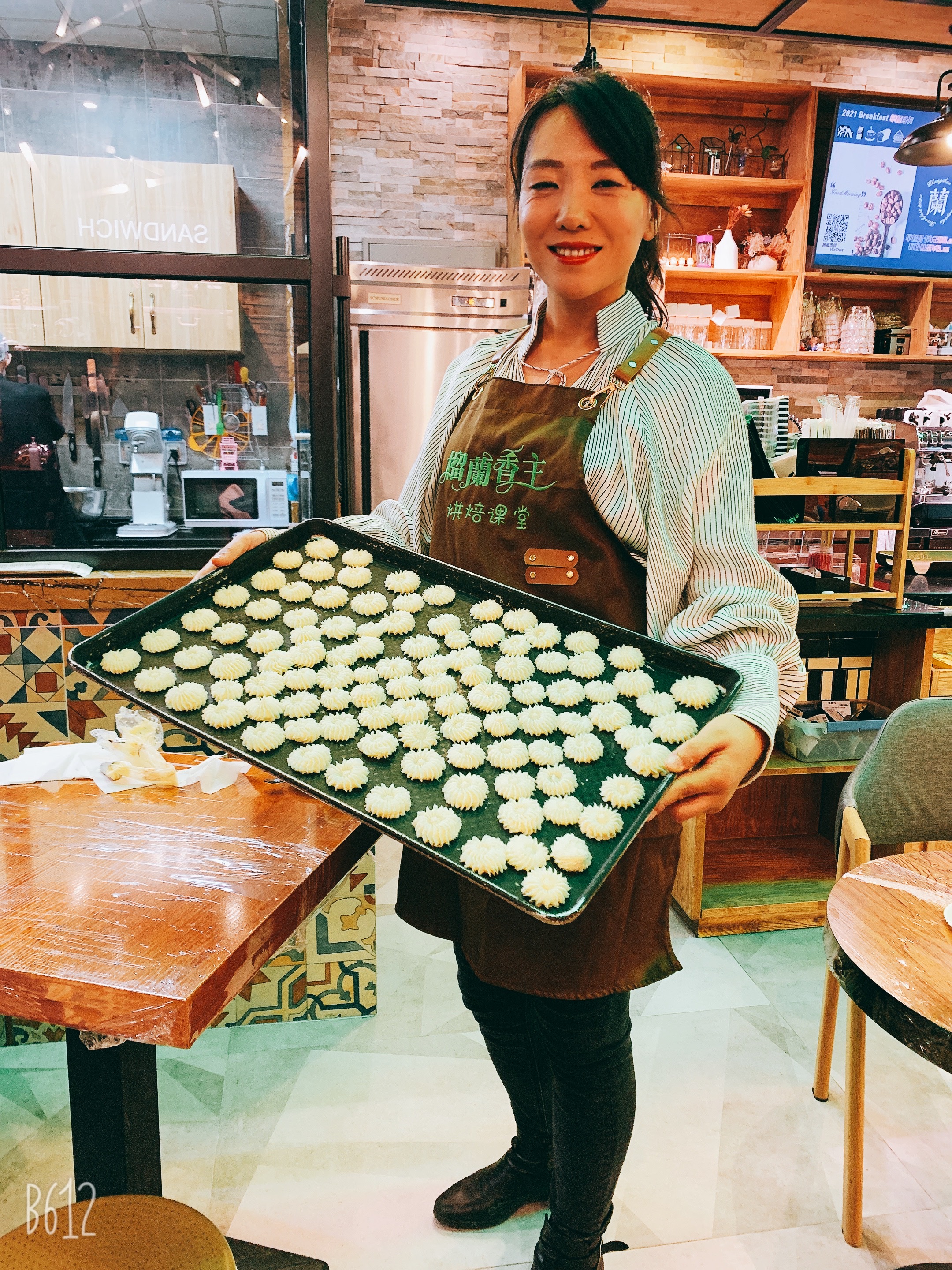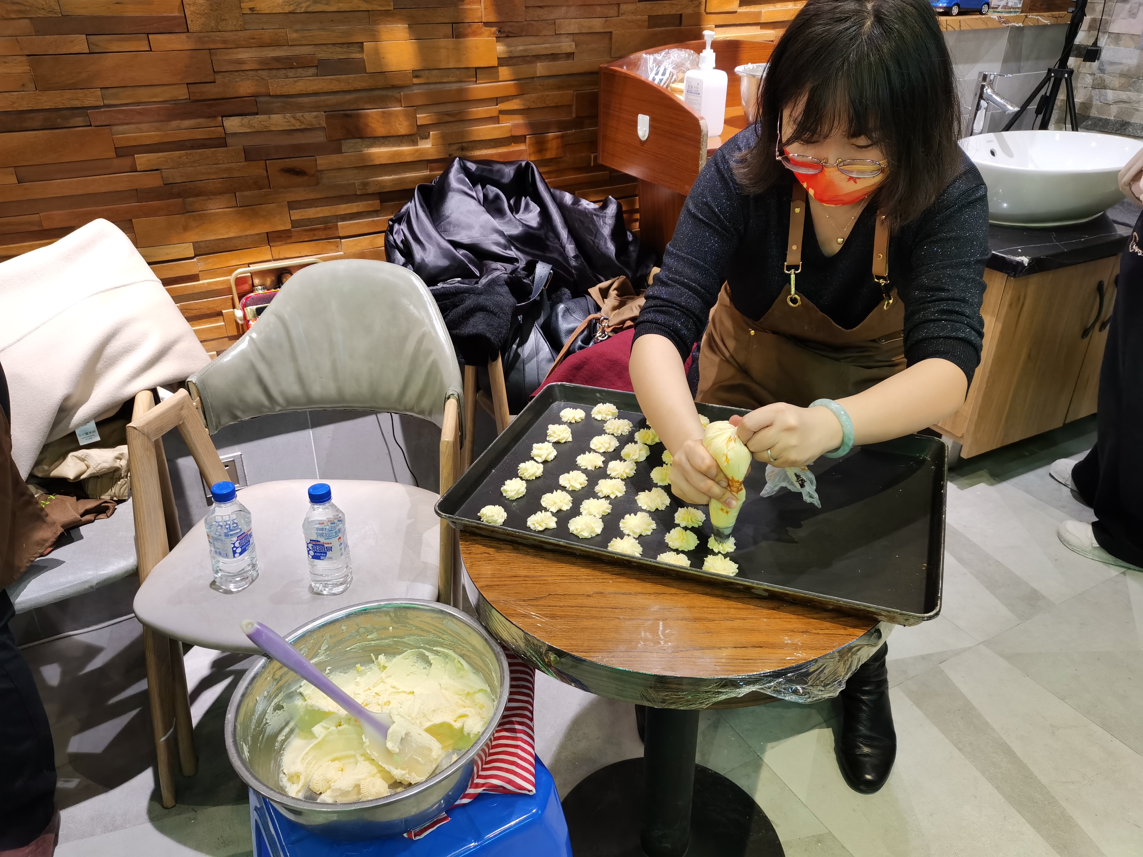 烘焙活动分8组进行,在烘焙师的耐心讲解和指导下,老师们很快掌握了黄油曲奇饼干的制作方法,虽然过程难免手忙脚乱,但是大家相互配合,气氛融洽且愉悦,整场活动在笑声中进行。