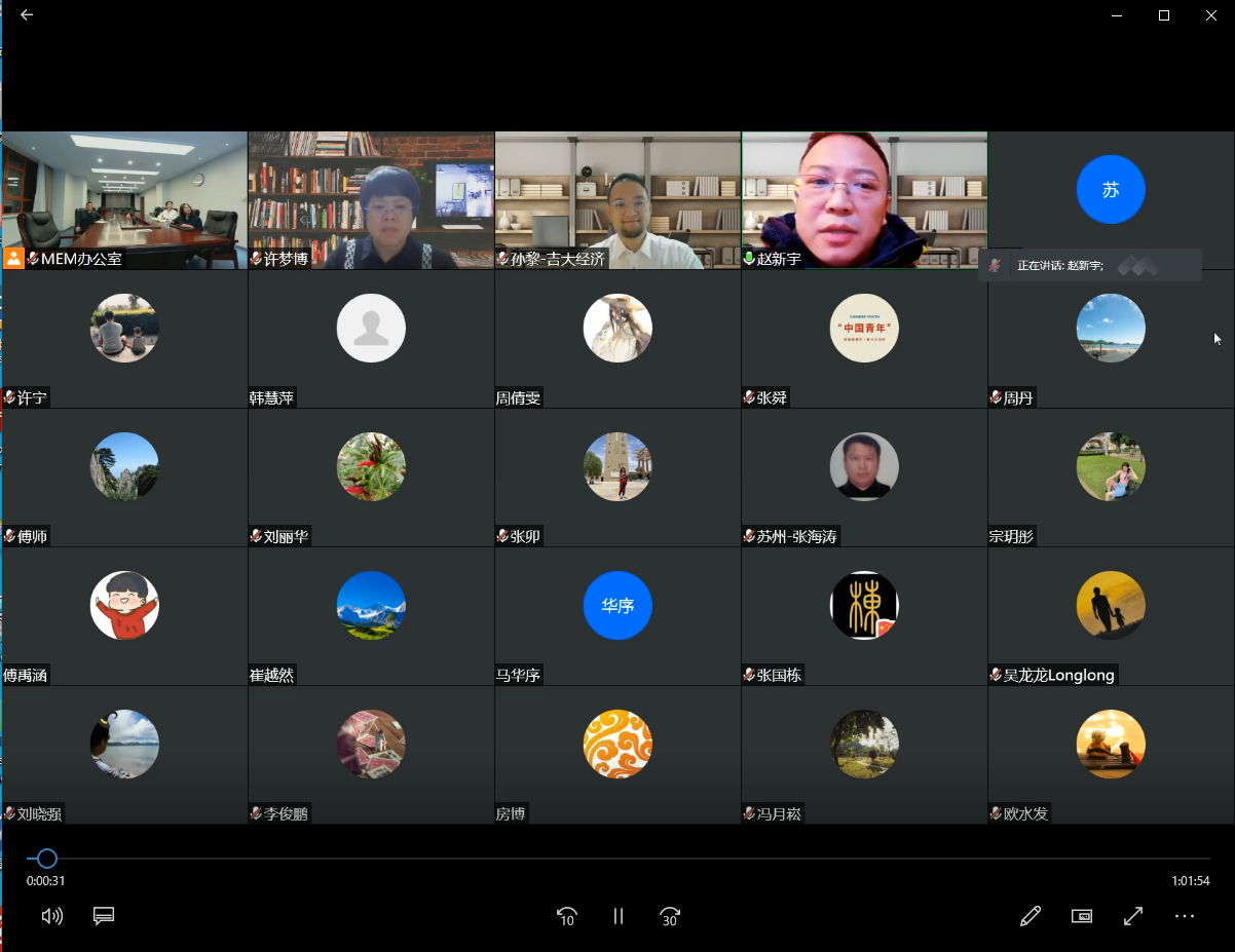 副院长王倩教授,经济学系主任赵新宇教授,财政系主任许梦博教授,金融系主任周佰成教授,国际经济系主任孙黎副教授,部分硕士生导师及2021级MEM全体学生参加了此次见面会。