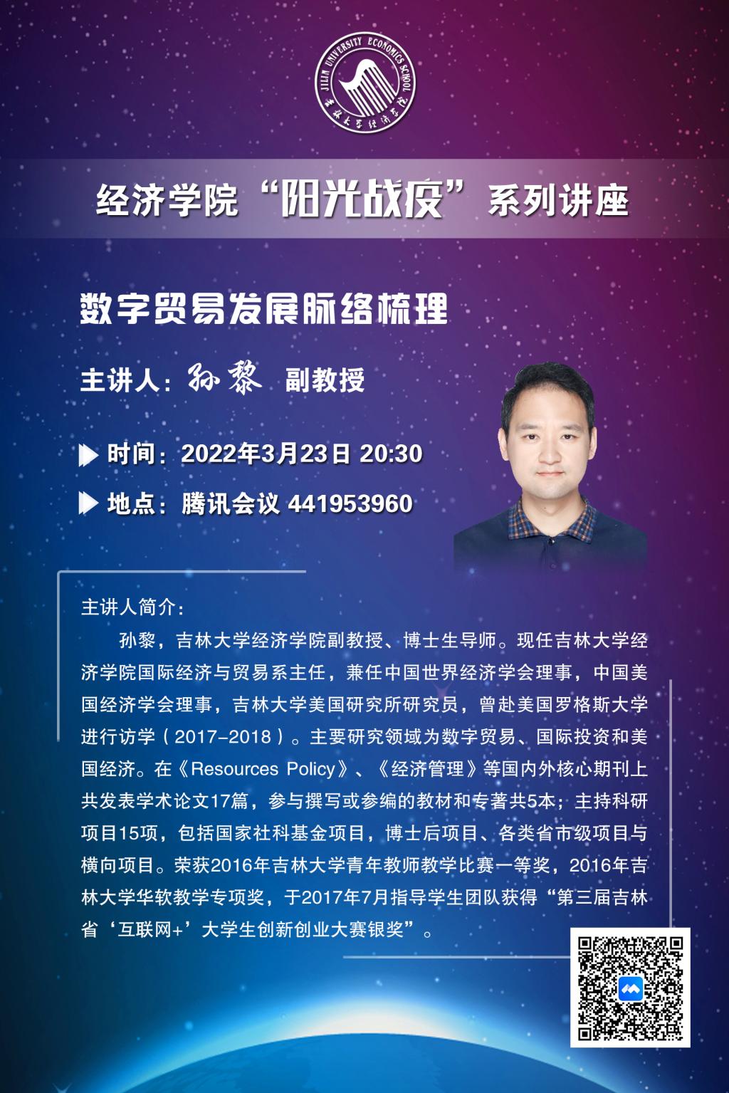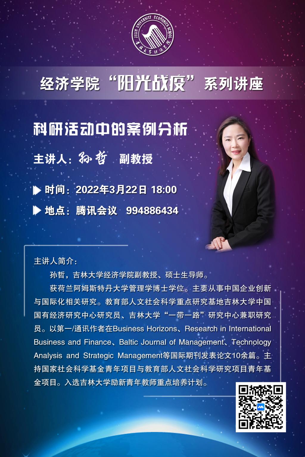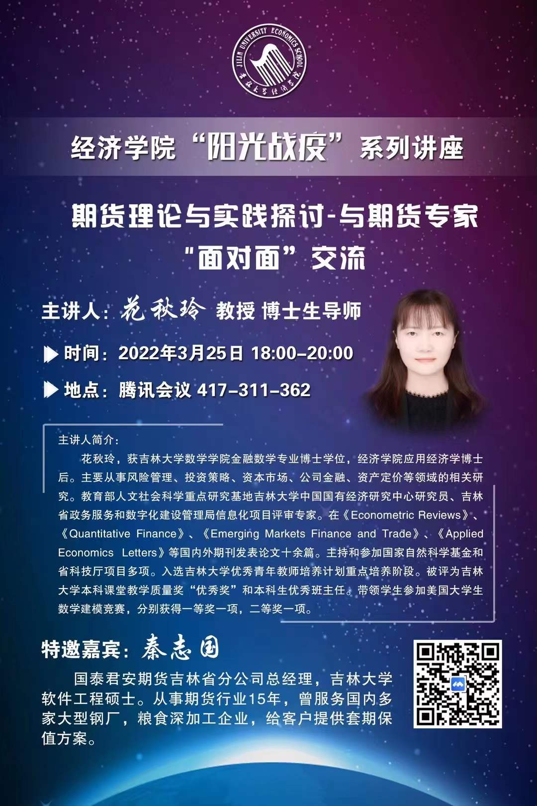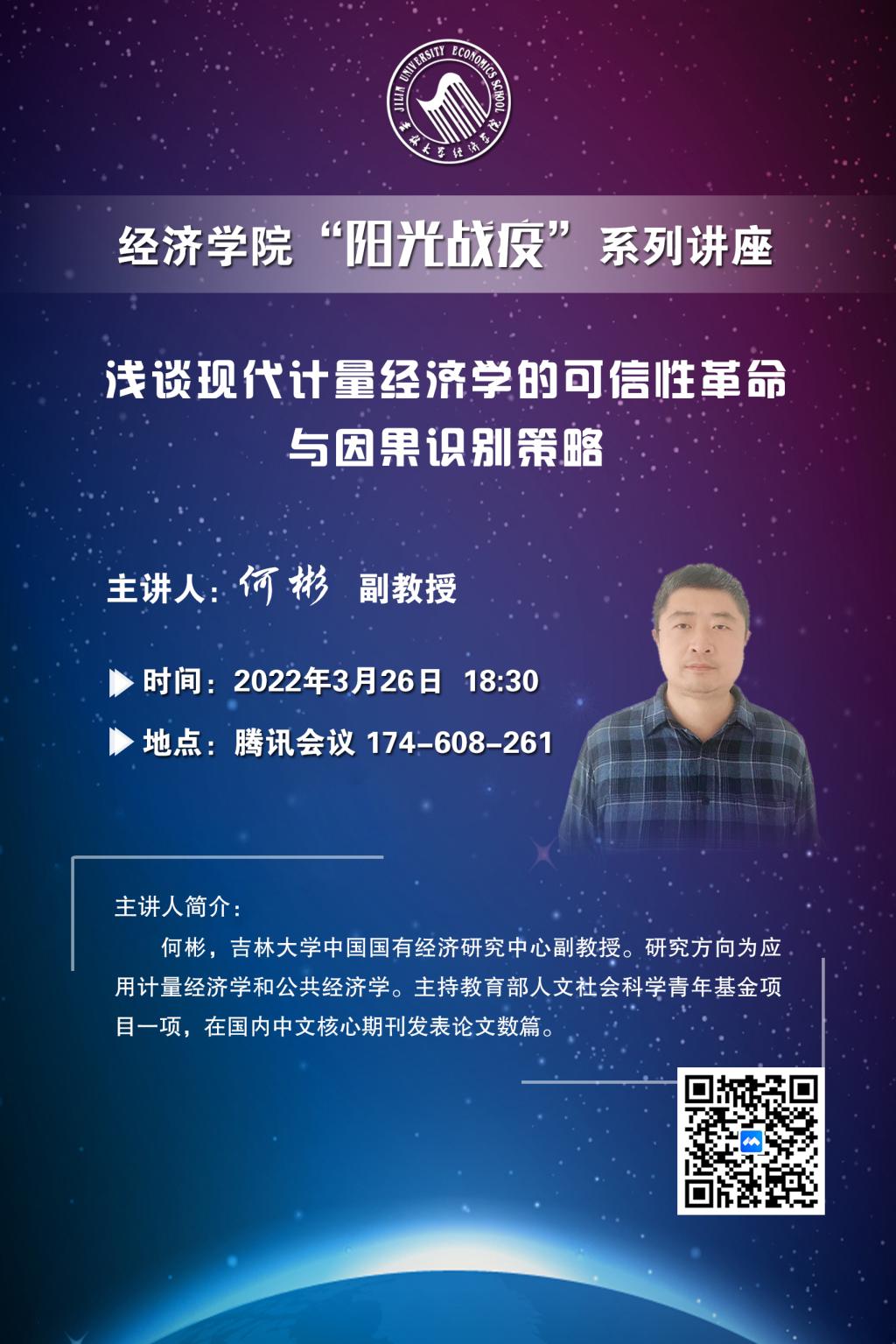 于近期开展了“阳光战疫”系列在线学术报告活动。首批来自经济学系、国际经济与贸易系、财政系、金融系以及吉林大学中国国有经济研究中心的多位老师,通过在线互动的方式为全校师生作学术报告,报告主题多样、内容丰富,得到校内师生的高度关注和广泛好评。