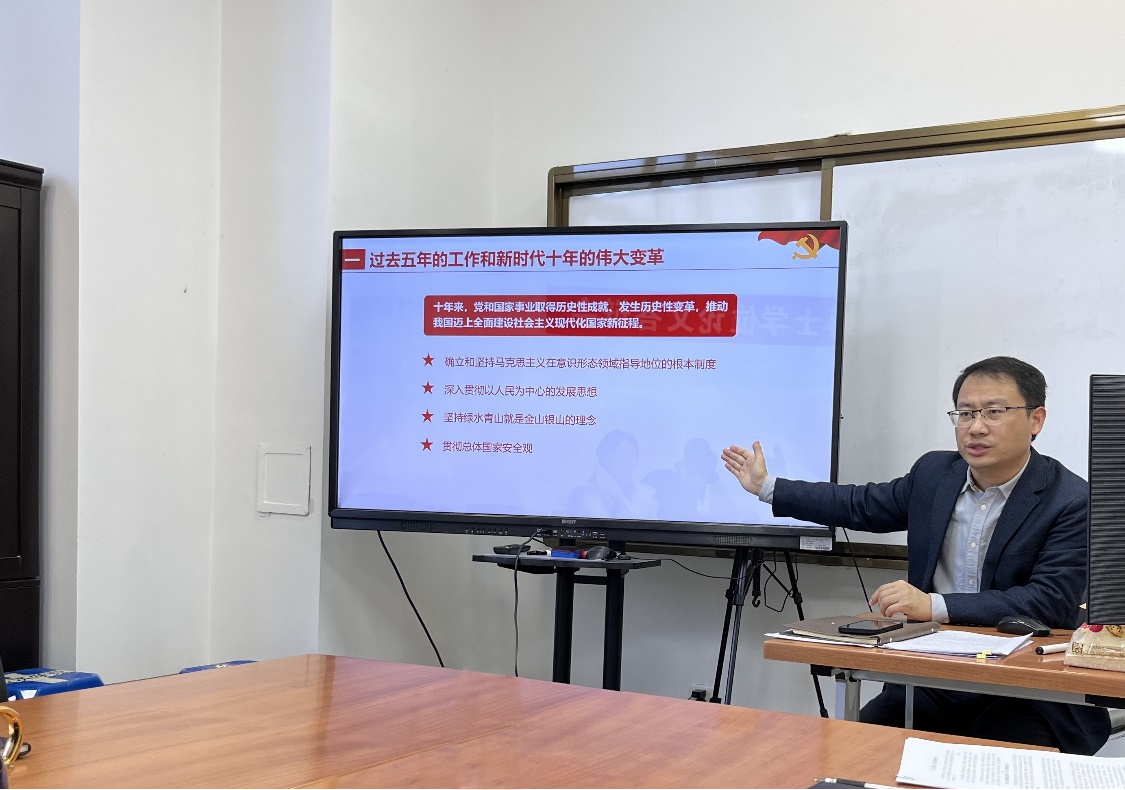 会议强调,党的二十大主题是新时代新征程党和国家事业发展的总纲,是全面建设社会主义现代化国家、全面推进中华民族伟大复兴的奋斗目标,应全面理解、深刻领会。会上,史本叶教授对党的二十大报告主要内容进行深入解读和阐释,带领大家进行共同学习。其中,对于“加快构建新发展格局,着力推动高质量发展”部分进行重点解读,并结合经济学知识和编辑业务,着重阐述了构建新发展格局和推动高质量发展的深刻内涵和重大意义,指出这是我国进入新发展阶段而作出的重大战略部署,相关精神、理论、思想和举措等都是后期办刊工作中要关注的重点内容。