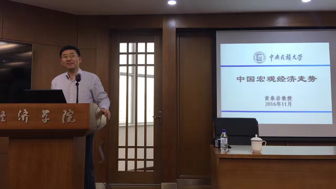 黄泰岩教授从中国经济的下行压力、中国经济是否会持续下行以及中国经济的未来走势三个方面讲述了当前我国宏观经济的走势。首先,黄泰岩教授认为,当前中国经济确实面临着下行压力。2016年前3个季度GDP的增速已经跌破去年的6.9%,达到6.7%,而且拉动宏观经济增长的“三驾马车”(消费、投资、净出口)也呈下降趋势,加之债务问题的凸显,我国当前的宏观经济形势可谓挑战重重。接下来,黄泰岩教授从影响经济下行的因素分析了中国经济是否会持续下行。他分别从结构性因素和周期性因素两个方面阐述了这一问题。黄泰岩教授认为,我国经济正处于一个关键期,一旦突破这个瓶颈,那么中国将会继续保持高速的经济增长。最后,黄泰岩教授对中国经济的未来走势进行了分析,并用狄更斯在《双城记》开篇的话语作为这次讲座的结束语。