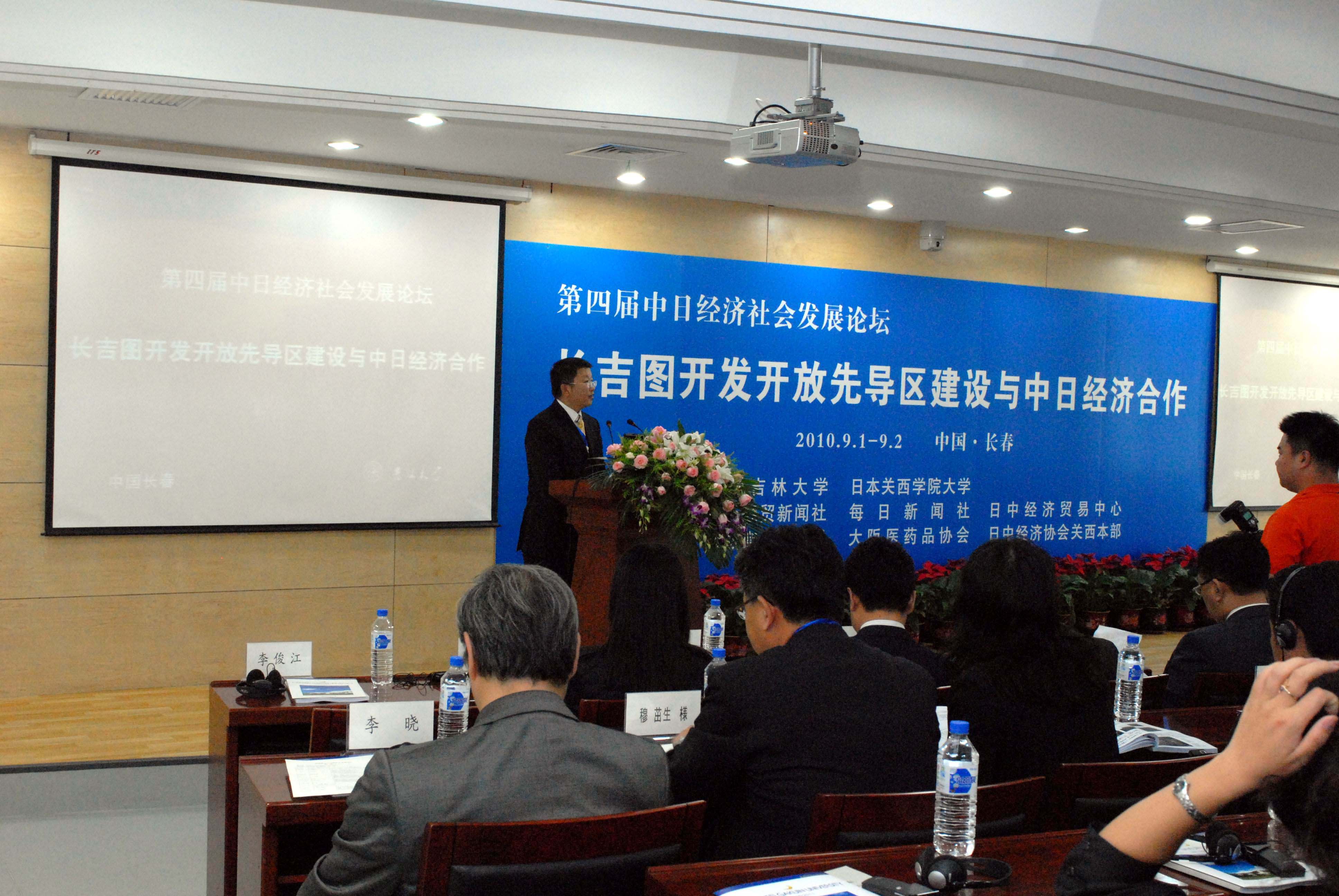 承办的第四届“中日经济社会发展论坛”于2010年9月1日在长春隆重召开。本届论坛的主题为“长吉图开发开放先导区建设与中日经济合作”。吉林大学常务副书记兼副校长王胜今教授、日本关西学院大学校长杉原左右一教授、吉林省商务厅副厅长张长新先生、日中经济贸易中心理事长青木俊一郎先生以及大日本住友制药会长宫武健次郎先生出席了开幕式并分别致辞。吉林大学党委常委、总会计师杜莉教授及学校有关部门负责人也出席了开幕式。论坛开幕式由吉林大学茄子视频