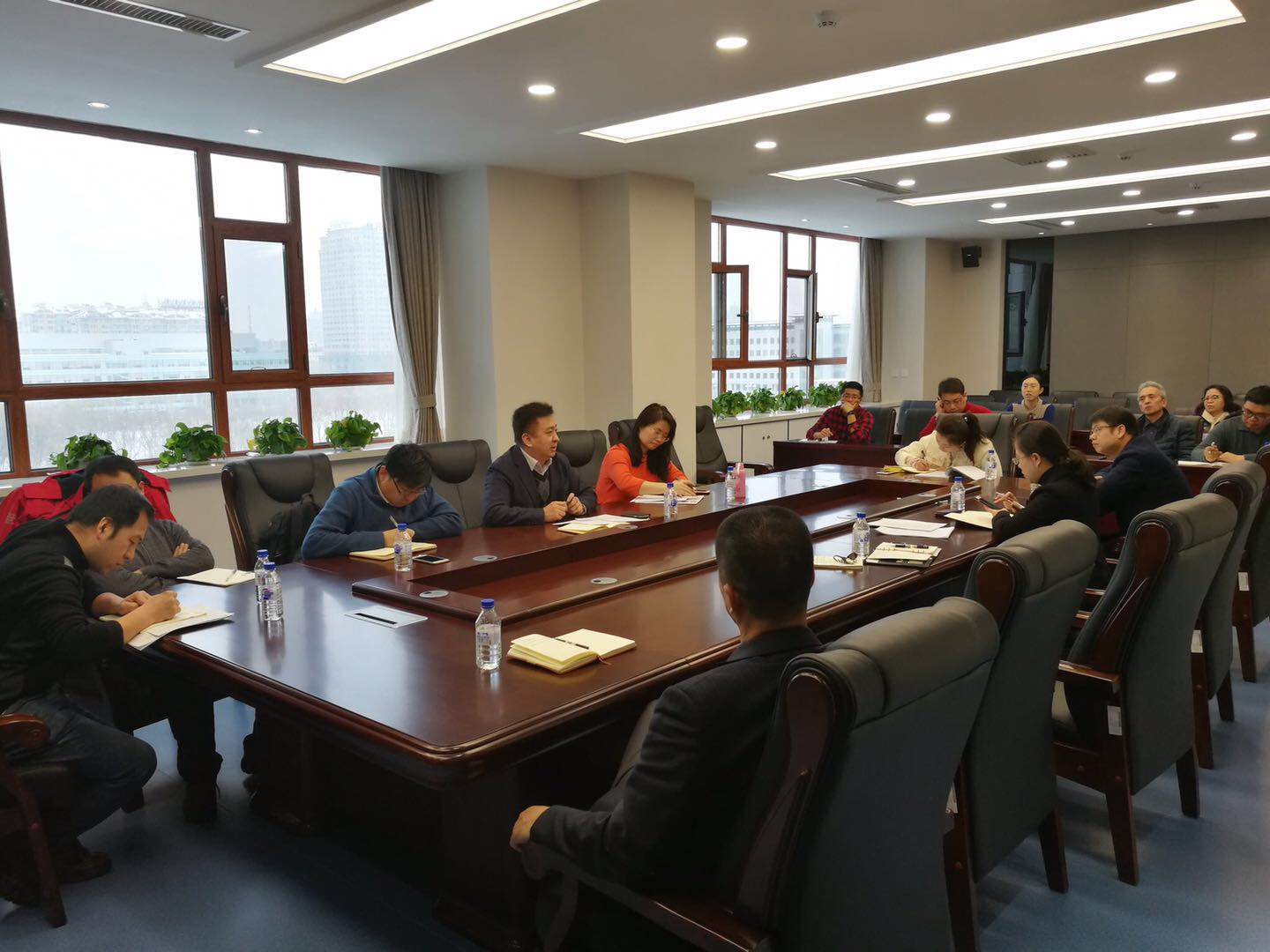 在东荣大厦808召开党政联席会议扩大会议,传达近期学校召开的相关会议精神,安排部署新学期工作,院领导班子全体成员、各科室负责人参加了会议,会议由党委书记陈密主持。