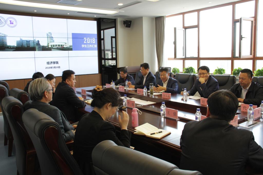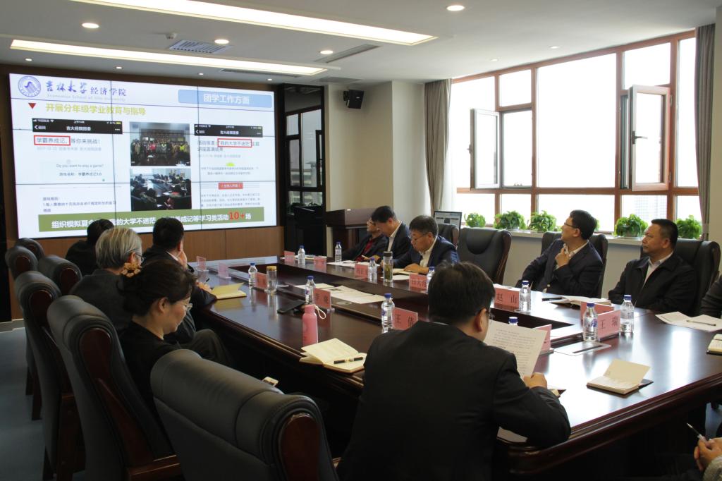 院长李晓就如何提升大学生素质方面提出了几点意见和建议。接着,经济学院主管研究生副书记张倩从学院研究生基本情况、思想政治建设工作开展情况以及存在困难和问题三个方面进行了汇报。主管本科生教学工作副院长王倩和主管研究生培养工作副院长丁一兵分别围绕自己分管的工作介绍了学院相关工作开展情况。会上,与会人员畅所欲言,就目前涉及学生工作的多方面问题进行了积极有效的交流和探讨。