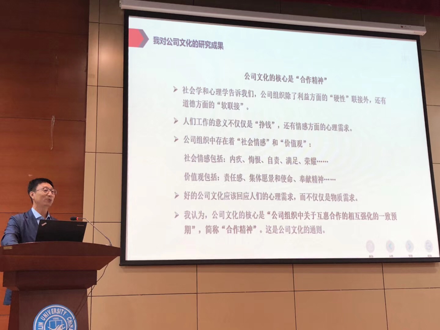 报告开始后,王梓木董事长围绕着公司文化的定义与内涵、公司文化的作用与功能、公司文化创造价值的途径,强调“公司文化的最深处是人性的平等与尊重”,并以华泰保险集团为例,介绍了茄子视频最新版APP下载发展的制度文化、责任文化、绩效文化、合作文化四个发展阶段,以及各种茄子视频最新版APP下载之间的相互关系。随后,王梓木董事长介绍了公司文化对公司治理的影响,强调治理是企业生命之本、文化是企业力量之源,公司最后的竞争将归结于公司治理与公司文化的竞争。演讲结束后,现场响起热烈的掌声,部分师生围绕报告主题与王梓木董事长进行了互动交流。