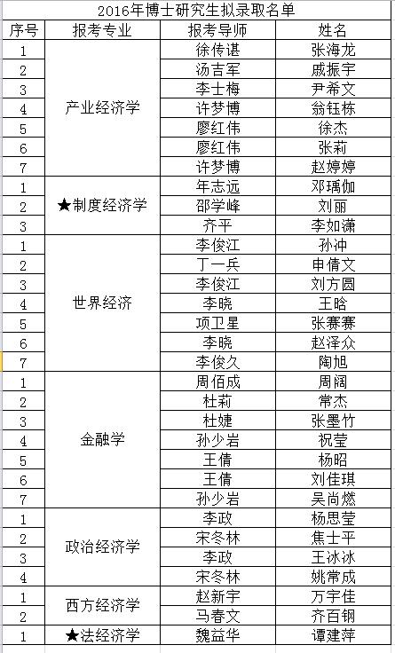 2016年博士研究生拟录取名单公示