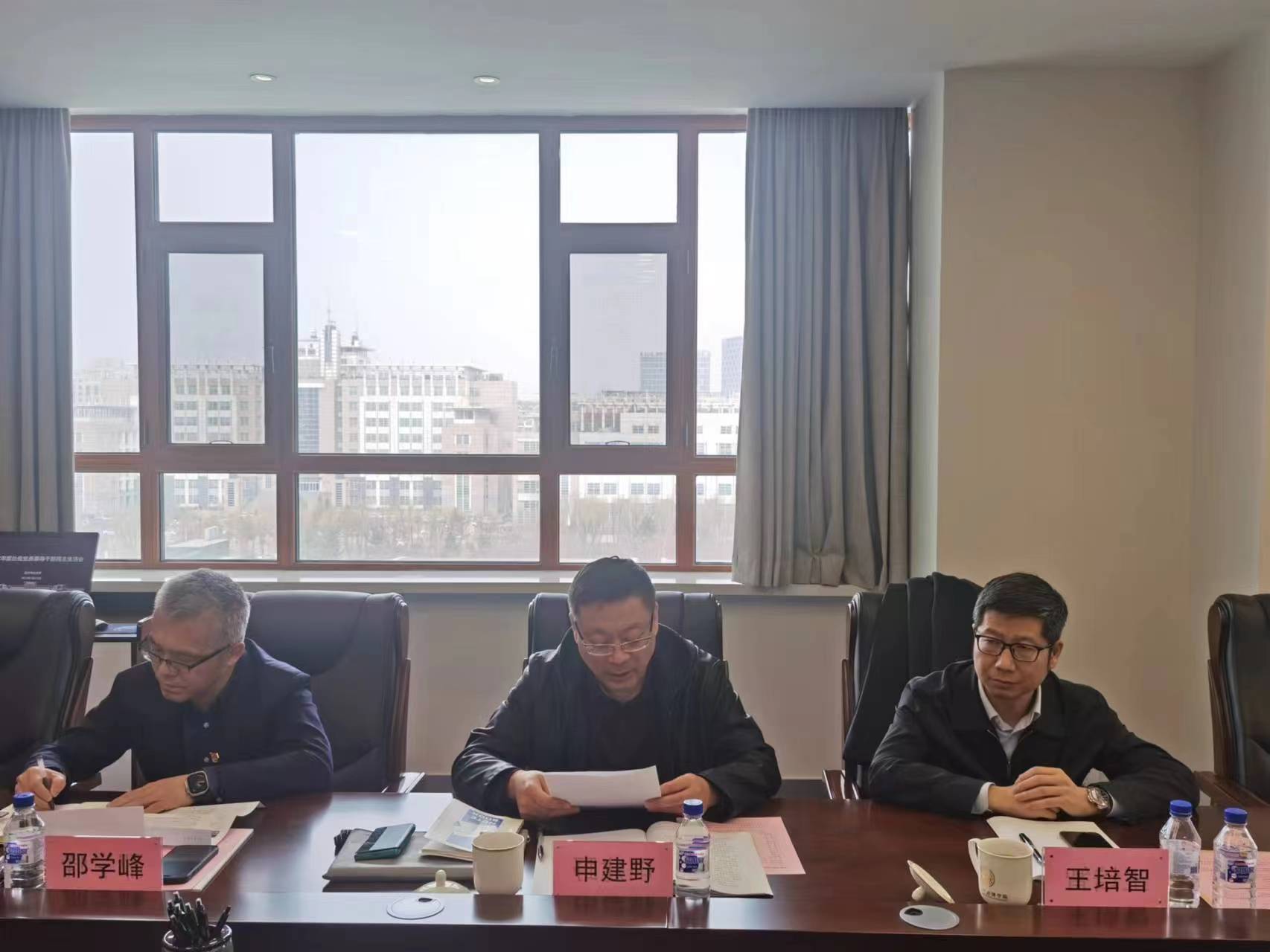 按照学校《关于开好2022年度处级党员领导干部民主生活会》要求,学院于3月21日,在中心校区东荣大厦A808室召开2022年度处级党员领导干部民主生活会,学校第十七督导组组长、校一级党建工作联络员申建野同志,校第十七督导组成员、党委巡视工作办公室副主任王培智同志列席会议。党委书记聂宏凯主持会议。