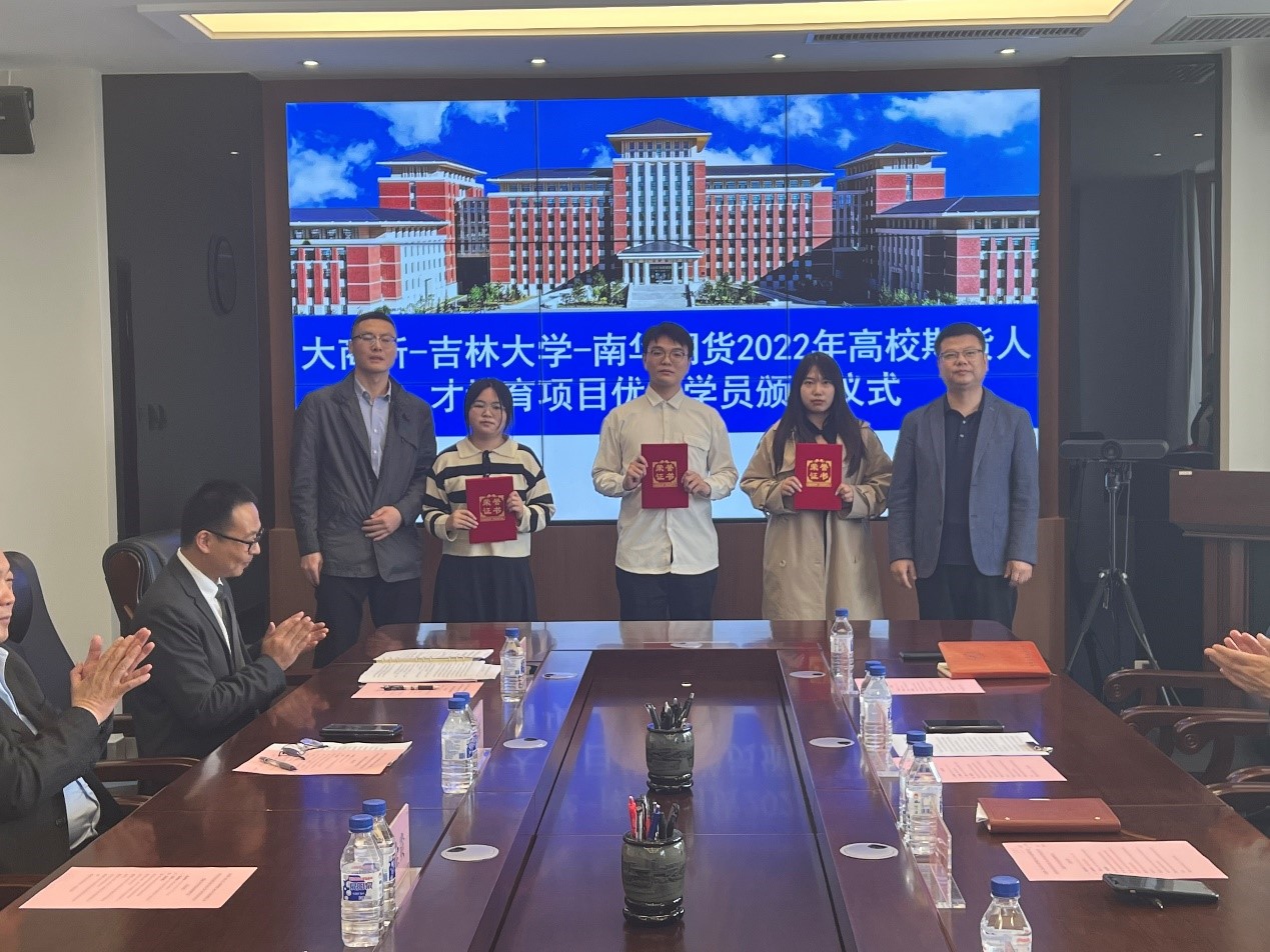 5月4日下午,大商所-吉林大学-南华期货2022年高校期货人才培育项目”结业仪式暨“吉林大学专业硕士产教融合实践基地”授牌仪式在东荣大厦A808室举行,南华期货股份有限公司董事总经理唐启军、南华期货股份有限公司大豆天下网农产品高级分析师康全贵以及茄子视频