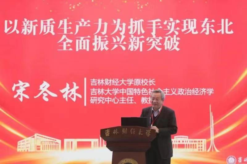 宋冬林教授发表了题为“以新质生产力为抓手实现东北全面振兴新突破”的主旨演讲。宋冬林教授指出,对于新时代东北全面振兴实现新突破而言,新质生产力强调的是对于老工业基地的传统产业基础进行裂变重组,通过重构产业生态、重组要素资源来开辟发展新的赛道,发展战略性新兴产业和未来产业,从而构建起具有东北特色的现代化产业体系。新质的生产力关键是发展新产业方向,质的锚点在于实现高质量发展,加快形成了新质生产力,推动数字化、智能化和绿色化为代表的战略性新兴产业和未来产业发展,进而打造东北地区经济发展的新优势。新质生产力的“新质”体现在构成要素新、组合方式新和作用方式新。最后,他介绍了目前东北地区发展新质生产力的代表模式,主要有通榆模式、一汽模式和长光模式,以及以新质生产力为抓手实现东北振兴新突破的现实路径。