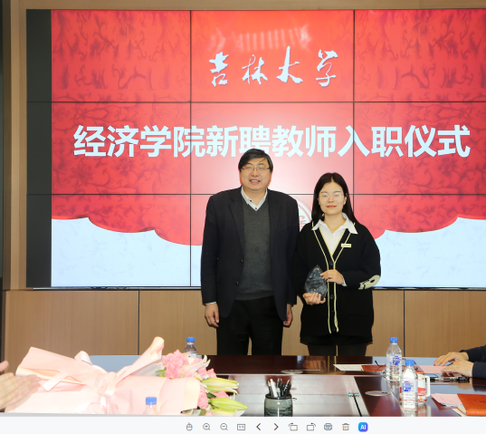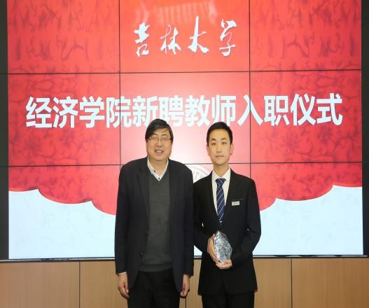 徽章并颁发入职纪念奖杯,向两位学院教师队伍的新生力量表示欢迎与期许。