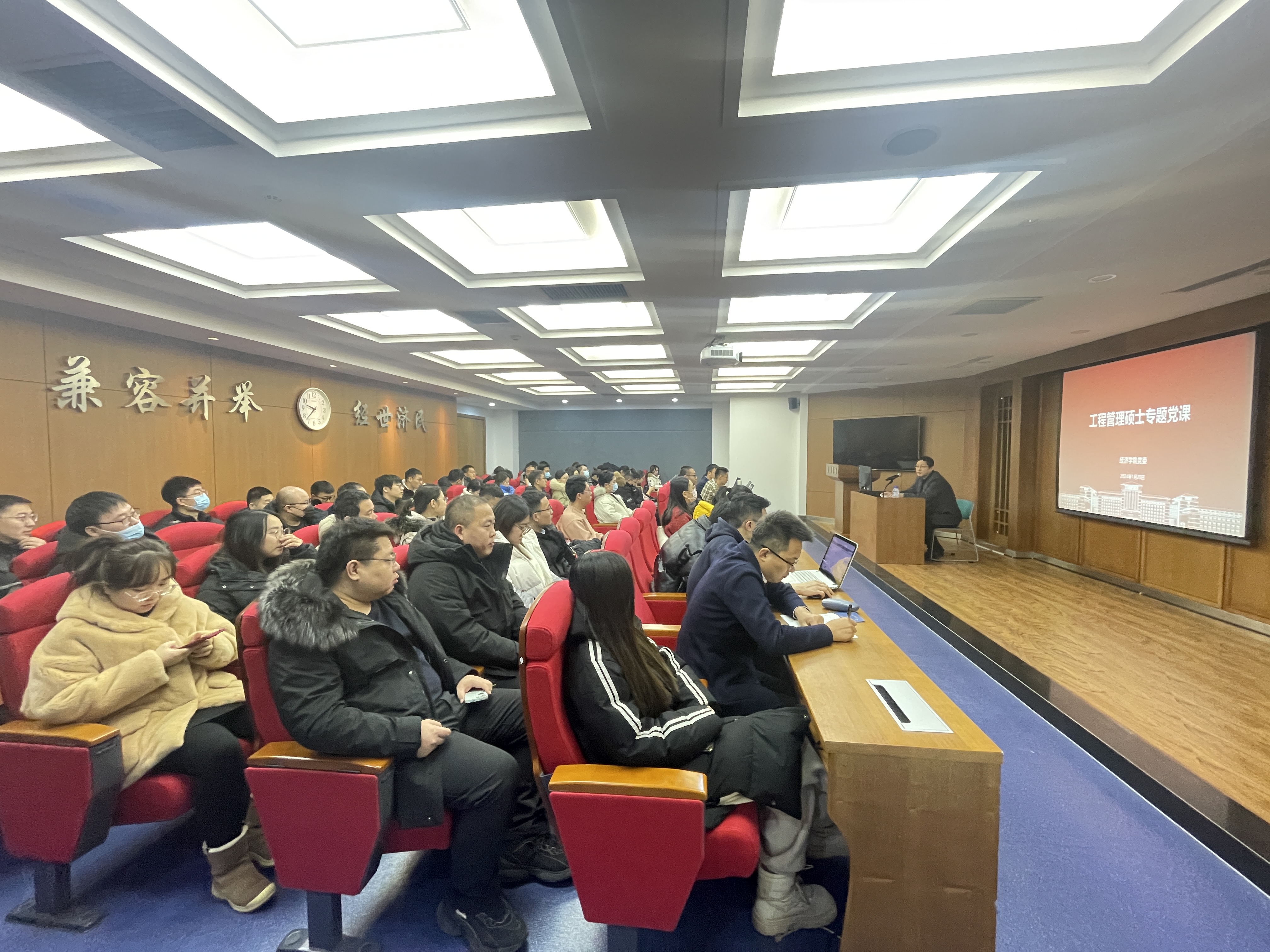 党委书记聂宏凯以“提升政治理论素养 增加知识转化能力本领”为主题,为学院工程管理硕士学生讲授了内容夯实且极富教育意义的“新年第一次党课”。党课由工程管理硕士办公室副主任于洋主持。