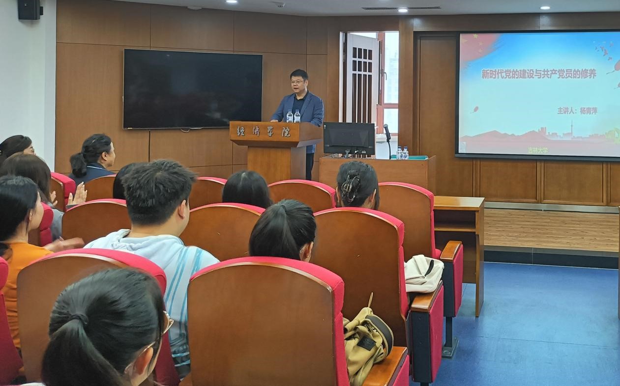 邀请吉林大学关工委常务副主任、讲师团团长杨青萍为本期发展对象开展“新时代党的建设与共产党员修养”专题党课。活动由学院党委副书记赵勇主持,离退休党委副书记、纪委书记王欢参加本次活动。