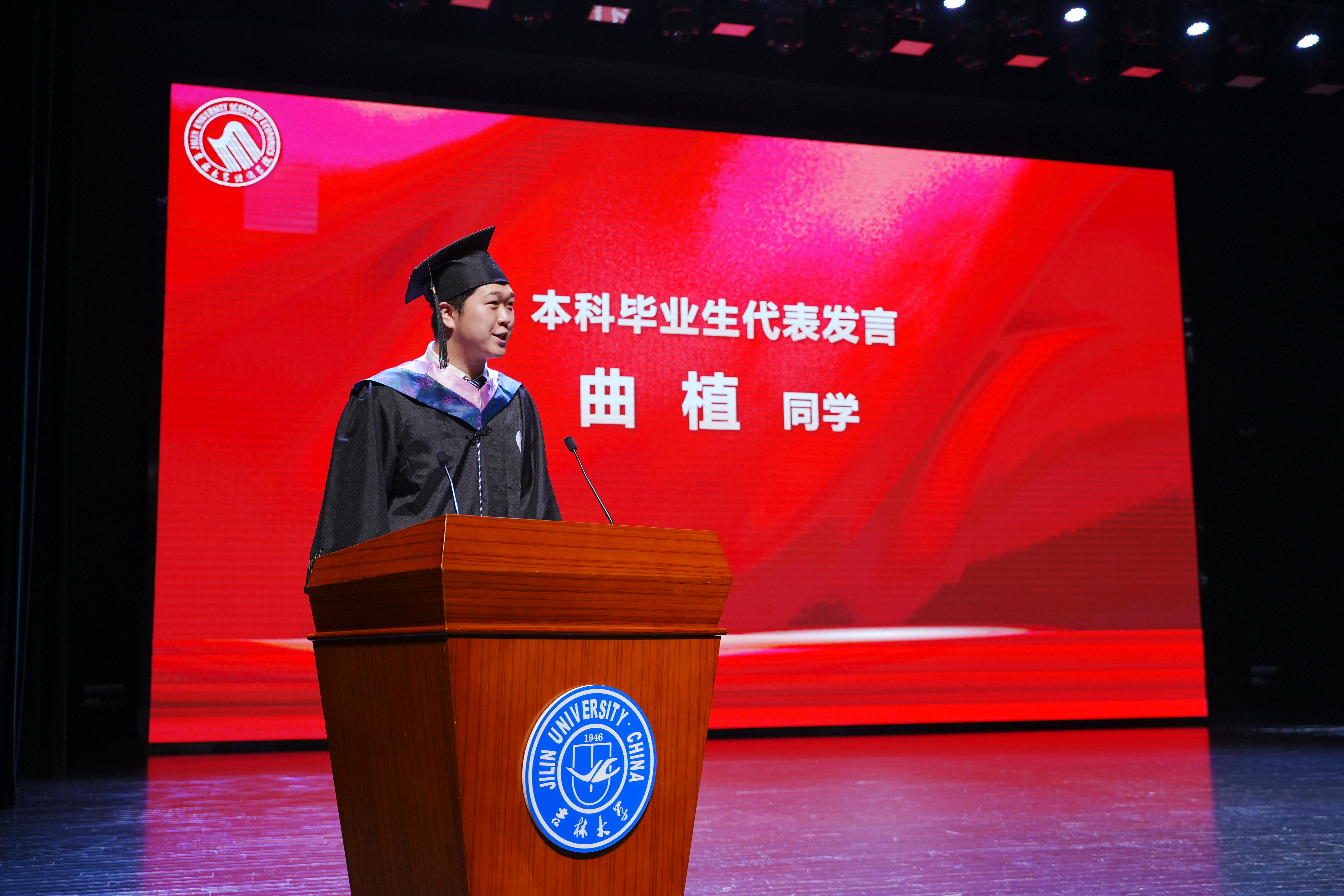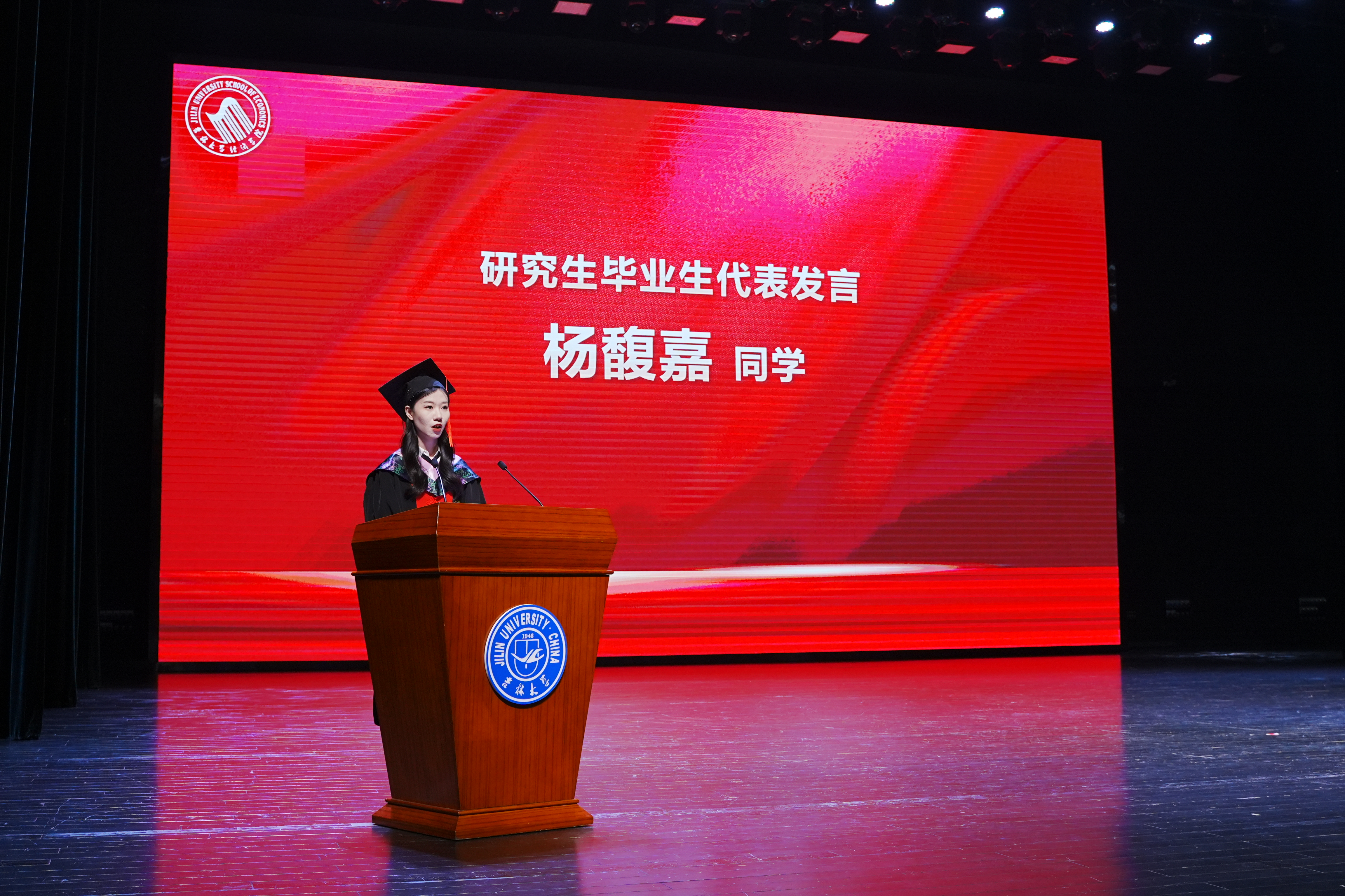 2021级博士研究生杨馥嘉同学在发言中讲到,“作为即将踏上新征程的毕业生,我们要始终铭记我们的责任和努力的方向。相信在座的研究生毕业生们未来无论从事怎样的工作,都会把论文写在祖国大地上,把青春奉献在国家需要的岗位上。求实创新、励志图强的吉大精神也将始终激励着我们脚踏实地学习知识,坚持不懈探索真理,勇于创新,追求卓越。”