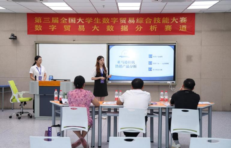 高度重视师生参与本届全国赛事,组建了以国际经济与贸易系教师为主的教师指导队伍,多次召开线下线上参赛指导会,强化了参赛学生关于数字贸易专业知识和综合技能的训练,深入指导了内容设计、技术支持、报告撰写、路演答辩等相关备赛环节,夯实了参赛队伍的专业技能和竞赛能力。
