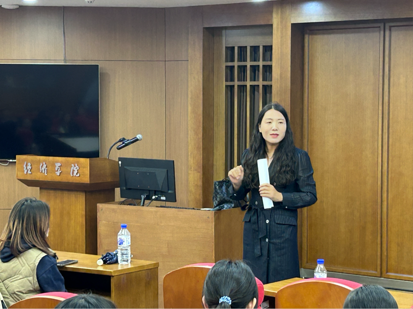 而后,宋洋老师着重介绍了财政专业特色学术导师的重要性。宋洋老师强调,学术导师不仅是知识的引路人,更是同学们在学术探索道路上不可或缺的伙伴与指导者。同学们应根据自己的学术兴趣、职业规划以及长远发展目标,审慎考虑并选择合适的导师,尽早规划自己的学术道路,主动与导师沟通,积极参与科研项目。