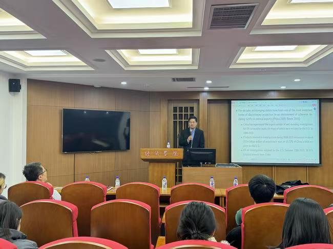 随后,李志远教授开始了此次讲座。李志远教授首先对确定实施的反倾销措施与未成立的反倾销调查之间的差异进行讲解。他认为,虽然未成立的反倾销调查通常被视为是良性的,但后期该产品继续遭遇调查的概率会高于正常产品,其面临的不确定性威胁骤增,这必然会对企业的出口动态产生影响。之后,李志远教授利用2000年至2015年产品进出口数据研究发现,贸易政策不确定性的提高直接降低了新进入企业的数量,但对企业的退出行为也产生了显著的抑制作用。接着,李志远教授借助Melitz(2003)模型对这一研究结论进行解释。他认为,贸易政策不确定性的提高抑制了目的国市场的企业进入,对目的国市场的竞争程度产生了直接的削弱作用,进而抑制了企业的退出行为。最后,李志远教授对Melitz(2003)模型运用和理解中容易出现的误区与广大的研究生同学进行了深入的交流。