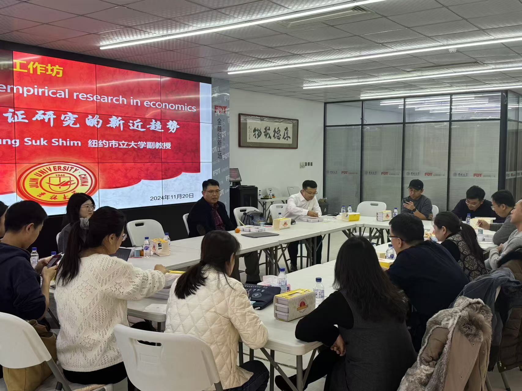 Hyoung Suk Shim教授以“经济学实证研究的新近趋势(Recent trends in empirical research in economics)”为主题开展了本次学术交流活动,和大家分享了对于实证研究自身的想法,Hyoung Suk Shim教授强调了要在理论与实践基础之上有进行多元化的实证研究方法,同时也考虑目前数字化转型以及技术对于实证研究的帮助性问题。