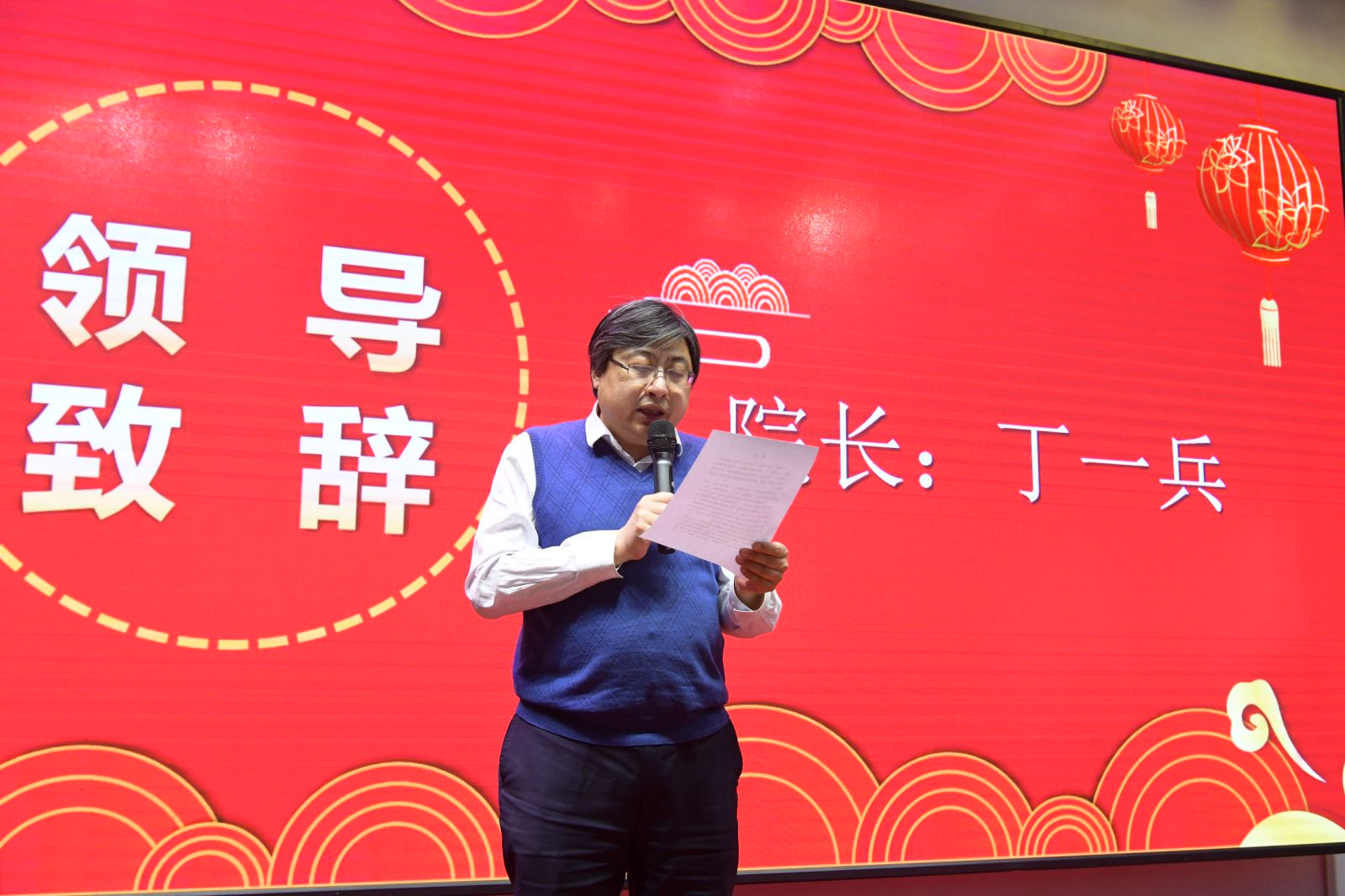院长丁一兵首先发表了热情洋溢的新年致辞,他回顾了过去一年学院在学科建设、人才培养、科学研究等方面取得的显著成就,并向师生献上新年祝福。
