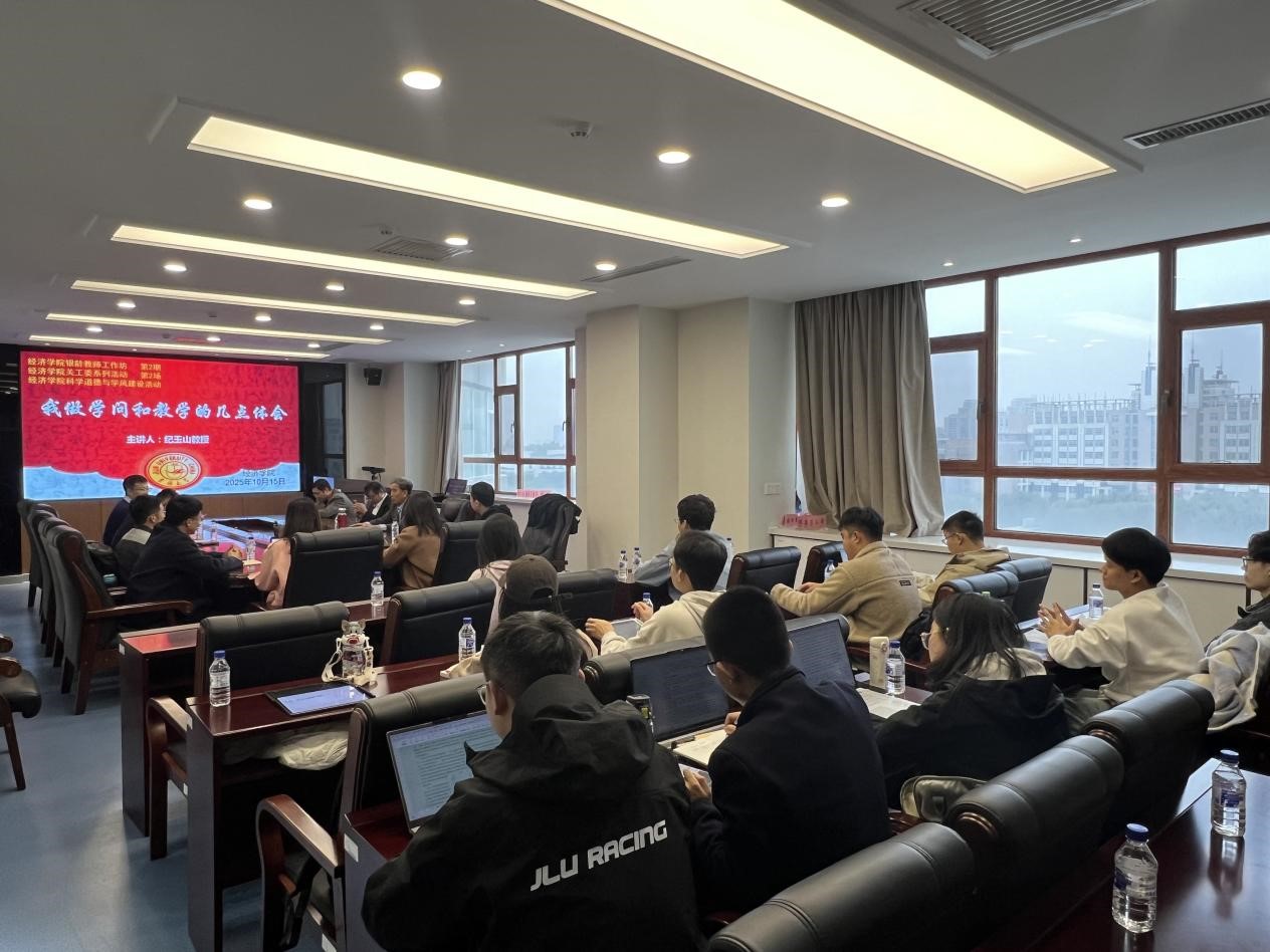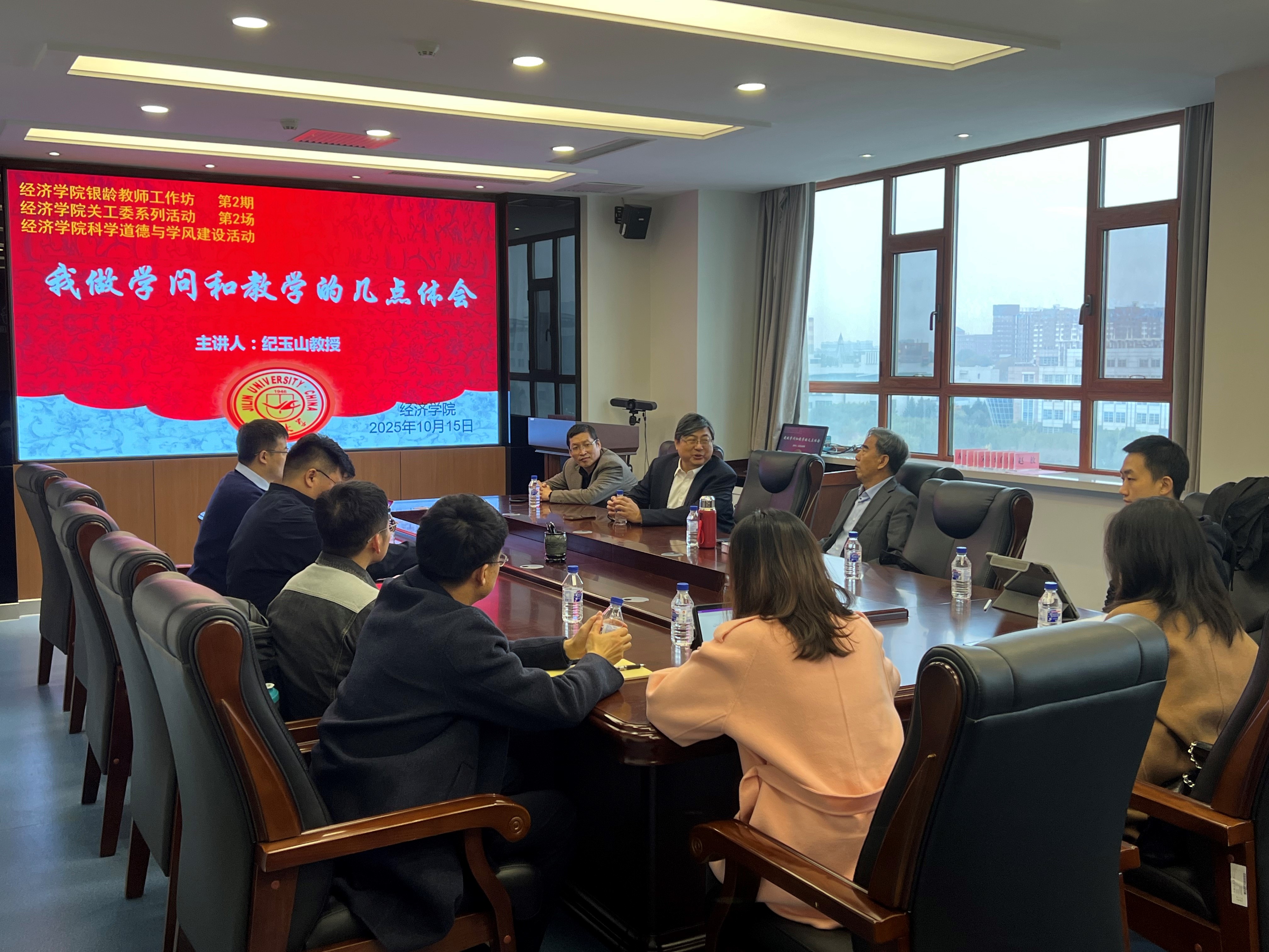 随后,纪玉山教授分享了自己做学问和教学的几点体会。首先回顾了多年学习历程,鼓舞师生要坚持学习,刻苦钻研。以自身经历教导年轻教师认真学,虚心学。其次,向师生分享自己的科研经验,指出做研究选题方向非常重要,年轻教师要考虑前沿课题,积极响应国家号召。再次,纪玉山教授向大家讲解科学大模型的相关概念,指出社会科学大模型的研究需要结合学术前沿,尤其是大模型落地需要有经济学逻辑的指导。最后,纪玉山教授叮嘱在座师生端正学风,指出一个团队要注重良好学风的建设,这样才能学术长青。