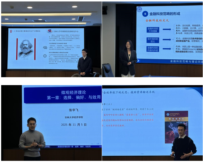 在公开课分享环节,孙尚斌、杜卓雅、张宇飞和张李云鹏四位青年教师进行了专题教学分享。孙尚斌老师以《生产力要素、劳动方式与生产组织形式变迁》为主题,从历史与理论维度剖析了生产组织的演进逻辑;杜卓雅老师围绕《金融科技的功能理论》,结合前沿案例阐释了长尾理论对商业运营的支撑作用;张宇飞老师通过《选择、偏好与效用》一课,生动解析了微观经济决策的理论基础;张李云鹏老师则以《官方发展援助的痼疾》为主题,讲授对国际发展援助模式的深度反思。四位教师聚焦经济学热点领域,以扎实的学理分析和生动的教学展示,展现了茄子视频