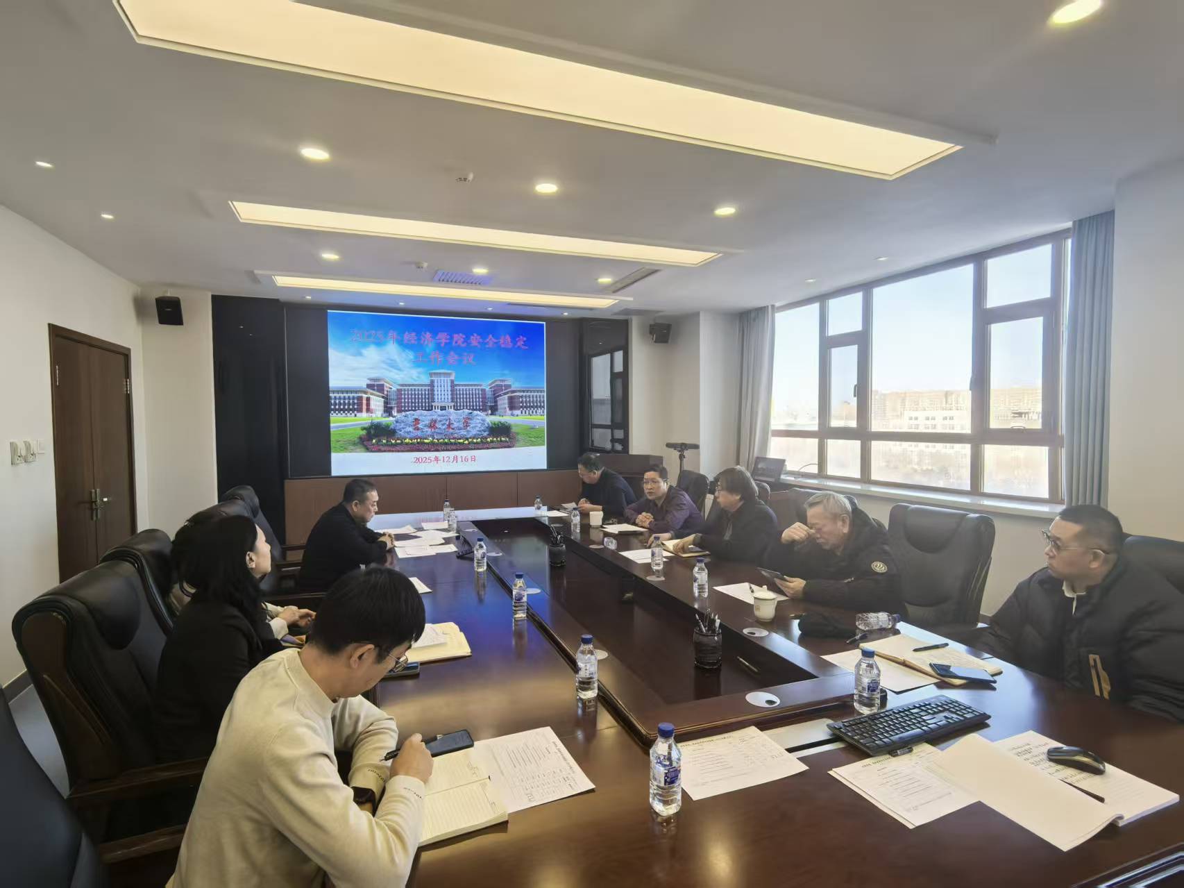 2025年安全稳定工作会议在学院808会议室召开。学院班子成员、安稳办及11个专项工作组成员参加会议,共同研判学院安全稳定工作形势,部署下一阶段重点任务。会议由邱立民副院长主持。