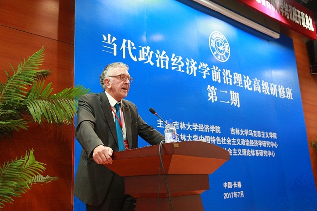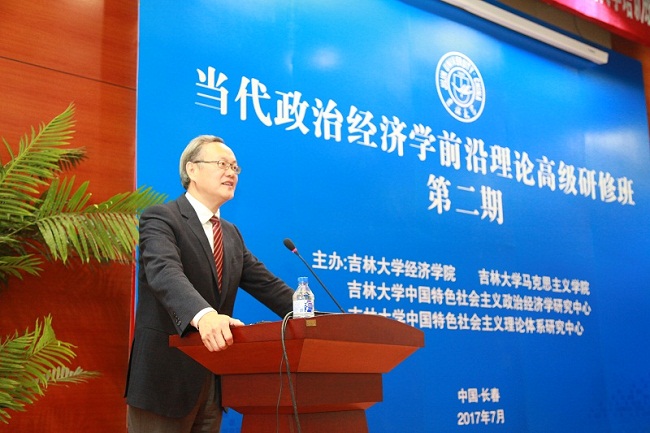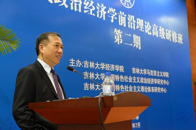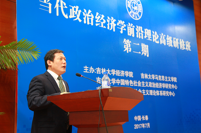 7月10日上午9:00,由吉林大学茄子视频 、吉林大学马克思主义学院、吉林大学中国特色社会主义政治经济学研究中心、吉林大学中国特色社会主义理论体系研究中心联合主办的第二期当代政治经济学前沿理论高级研修班在吉林大学国际学术大讲堂正式开班,同时,吉林大学中国特色社会主义政治经济学研究中心隆重揭牌。 出席开幕式的领导和嘉宾有吉林大学党委书记杨振斌教授,吉林财经大学校长、吉林大学中国特色社会主义政治经济学研究中心主任宋冬林教授,欧洲演化政治经济学会前主席、德国不莱梅大学Wolfram Elsner教授,英国金斯顿大学Steve Keen教授,美国犹他大学Alan Campbell教授,希腊克里特大学Dimitris Milonakis教授,德国杜伊斯堡—埃森大学代栓平教授,茄子视频 兼金融学院院长李晓教授,茄子视频 党委书记陈密,马克思主义学院党委书记王登攀,社会科学处副处长张晓萌,茄子视频 副院长丁一兵教授,茄子视频 副院长史本叶副教授。 开幕式由吉林大学中国特色社会主义政治经济学研究中心副主任、茄子视频 李政教授主持,来自全国各地的学员及本校师生150多人参加了开幕式。 大会第一项由教育部、茄子视频 兼金融学院院长李晓教授致辞。李晓教授首先介绍了茄子视频 的发展历史、学科专业和多年来取得的各项成就,指出茄子视频 政治经济学学科历史悠久,积淀深厚,成果丰硕,是学院的传统优势学科。接着,李晓教授从政治经济学的研究目标、研究内涵、研究视野,论述了当代中国政治经济学发展面临着的责任和使命,阐释了举办“当代政治经济学前沿理论高级研修班”的目的和意义。最后,李晓教授祝各位学员学习愉快,学有所获! 大会第二项由欧洲演化政治经济学会前主席、德国不莱梅大学的Wolfram Elsner教授致辞。Elsner教授指出中国经济的进步有目共睹,中国学者的努力是值得钦佩的,希望借此机会实现共同进步,为政治经济学研究和学科建设做出贡献。 随后,社会科学处副处长张晓萌宣读了“关于成立吉林大学中国特色社会主义政治经济学研究中心的决定”。 吉林大学党委书记杨振斌教授与德国不莱梅大学Elsner教授共同为“吉林大学中国特色社会主义政治经济学研究中心”揭牌。 揭牌仪式后,吉林财经大学校长、吉林大学中国特色社会主义政治经济学研究中心主任宋冬林教授致辞。他指出中国特色社会主义政治经济学研究中心将继承和发扬吉林大学老一辈经济学家的优良学术传统,植根于吉大风格的马克思主义政治经济学的深厚底蕴,弘扬吉大气派的马克思主义政治经济学的创新成果。真诚地希望各级领导和国内外专家对中国特色社会主义政治经济学研究中心的工作继续予以关注和支持! 大会最后由吉林大学党委书记杨振斌教授致辞。杨振斌书记首先代表吉林大学和李元元校长对各位老师和学员表示热烈的欢迎,对研修班的召开和研究中心的揭牌表示热烈的祝贺!接着杨振斌书记通过具体生动的故事向大家介绍了吉林大学的学科实力和学术影响力,指出吉林大学主办本次研修班,与大家共同加强对马克思主义政治经济学的学习、研究与运用,夯实马克思主义政治经济学基础,将有助于推动中国特色社会主义政治经济学的发展,为建设中国特色社会主义贡献力量。吉林大学会尽全力支持该研究中心,希望中心能继承和发扬好马克思主义政治经济学。开幕式结束后,各位领导、授课教师与全体学员共同合影留念,随后正式开始研修课 程。 吉林大学“当代政治经济学前沿理论高级研修班”贯彻落实习近平总书记关于“坚持和发展中国特色社会主义政治经济学,不断完善中国特色社会主义政治经济学理论体系”等重要讲话精神。在去年首期研修班的基础上,本期研修班对当代政治经济学理论进行深入分析,批判地继承现有的政治经济学理论,拓宽政治经济学的研究思路。本期高级研修班为期四天,邀请了来自中国、美国、英国、德国、希腊的9位知名学者授课,围绕经济发展中存在的问题以及最新理论进展,深入探究当代政治经济学前沿理论、研究方法及发展动态。