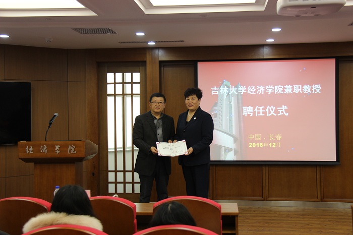 报告厅举行了兼职教授聘任仪式,国投安信期货有限公司董事长高杰校友受聘吉林大学茄子视频