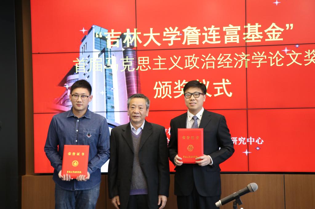 吉林大学中国特色社会主义政治经济学研究中心主任吉林财经大学校长宋冬林、吉林省委宣传部副部长王颖为获奖师生颁发了获奖证书。