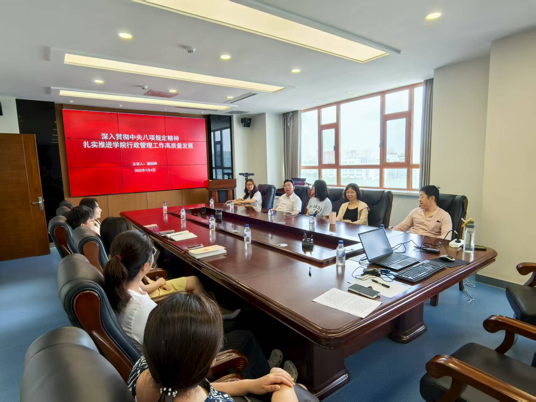 行政教工党支部于2025年7月4日上午,在东荣大厦A808室开展专题党课学习活动,行政教工的党支部书记潘国刚同志以“深入贯彻中央八项规定精神 扎实推进学院行政工作高质量发展”为题,为全体支部党员讲了一次内涵丰富的党课。